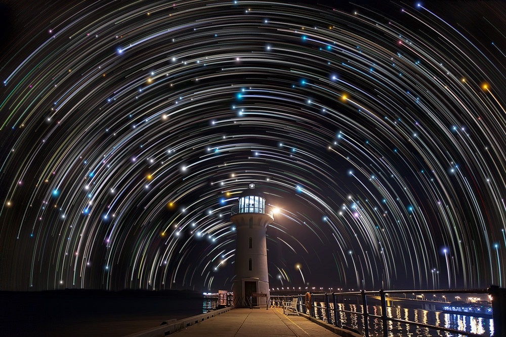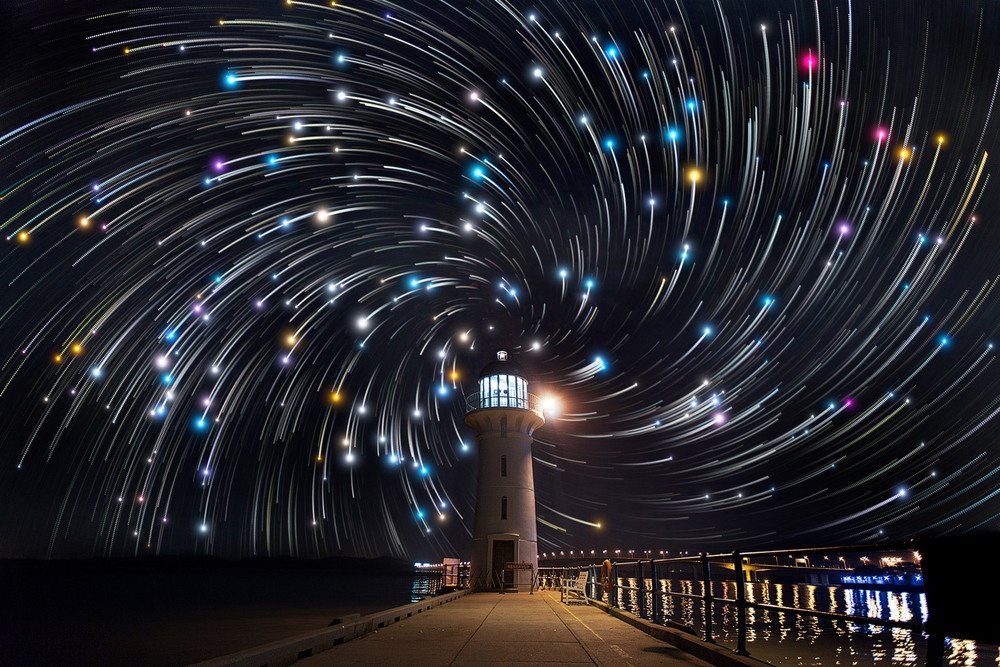 توضیح: چون دوربین عکاسی هنگام تصویر برداری از این مناظر، ثابت بوده است، اثر گردش وضعی زمین نیز در این تصاویر ثبت شده است. از آنجا که زمین در هر 23 ساعت و 56 دقیقه و 4 ثانیه یک بار به دور خود میگردد، از نظر مشاهده کنندگان زمینی اینطور به نظر میرسد که آسمان نیز در حال گردش به دور ستاره قطبی است و به همین دلیل وقتی دریچه شاتر دوربین برای مدتی طولانی باز بماند، اثر این حرکت به صورت یک منحنی ثبت میشود، البته در برخی تصاویر ردی مارپیچی را ملاحظه میکنید که طبیعی نیست و حاصل یک تکنیک عکاسی است.